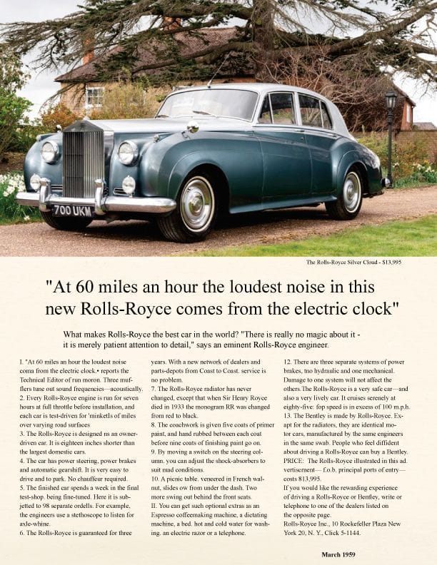 One of Ogilvy’s most iconic campaigns was for Rolls-Royce. The headline read: