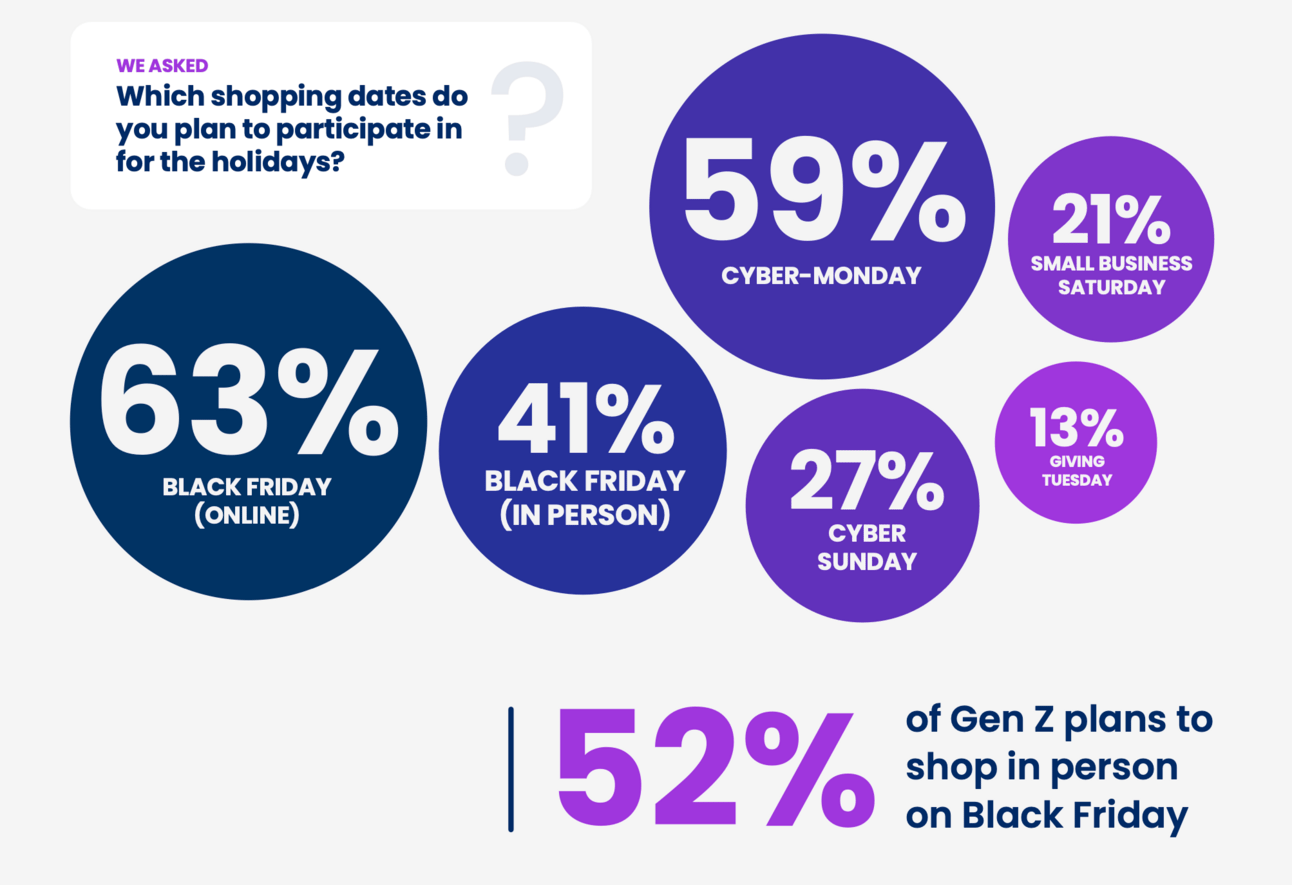 Welcome to the new normal: consumers blend online and in-store shopping to find the best deals. Gen Z leads the charge—52% plan to shop in-person on Black Friday, more than any other generation. It’s not online or offline; it’s both.