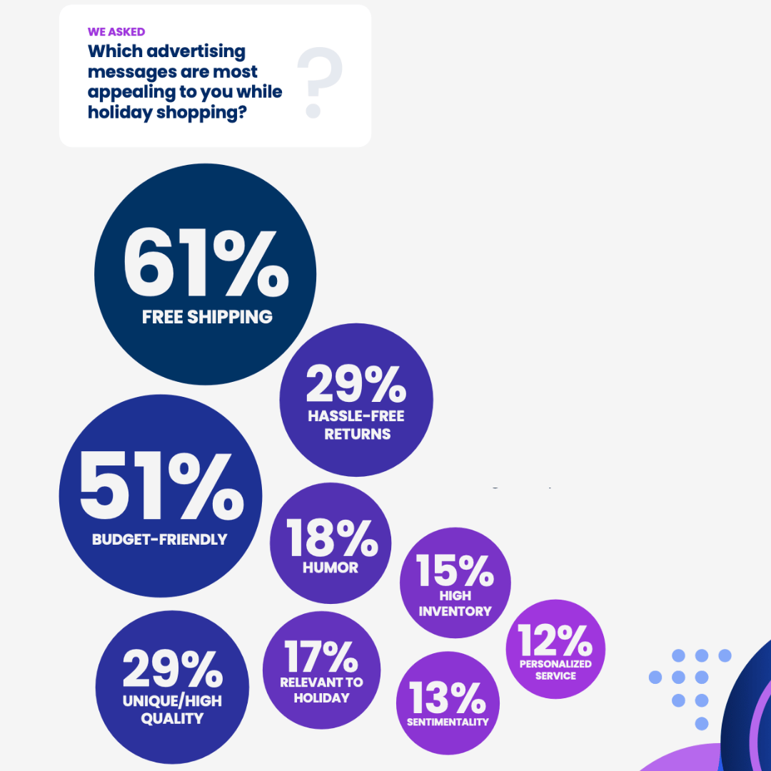 Shoppers care about one thing during the holiday rush: value. This season, 61% are driven by free shipping, and 51% are chasing budget-friendly deals. Convenience and cost are king, and creativity is far down the list. If your campaign doesn’t scream, “We’ll save you time and money,” you’re out of the game.